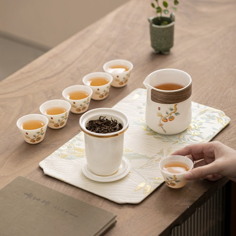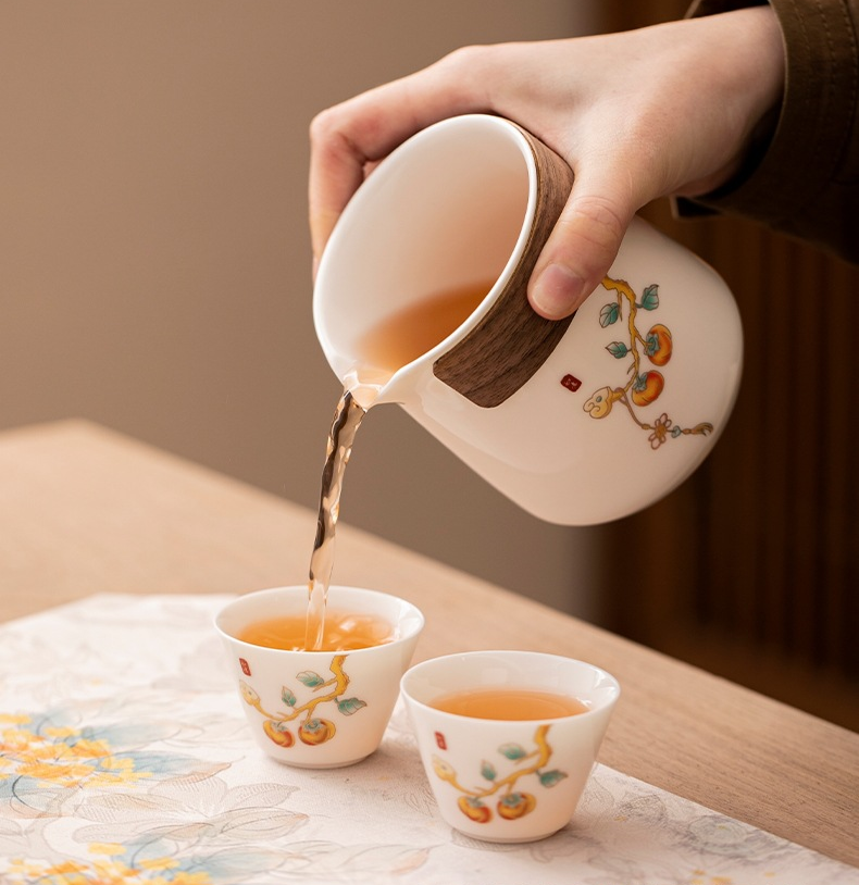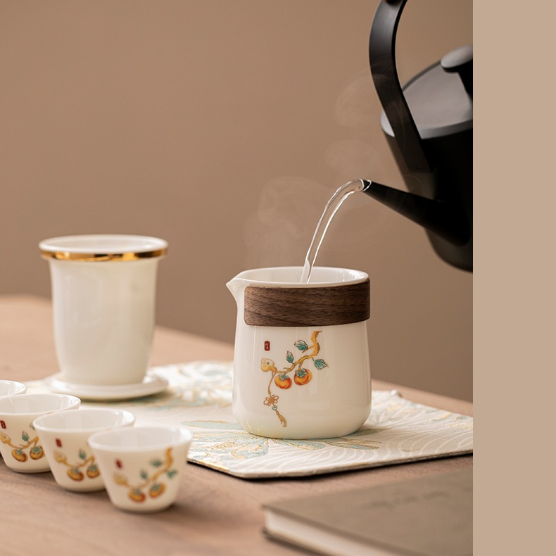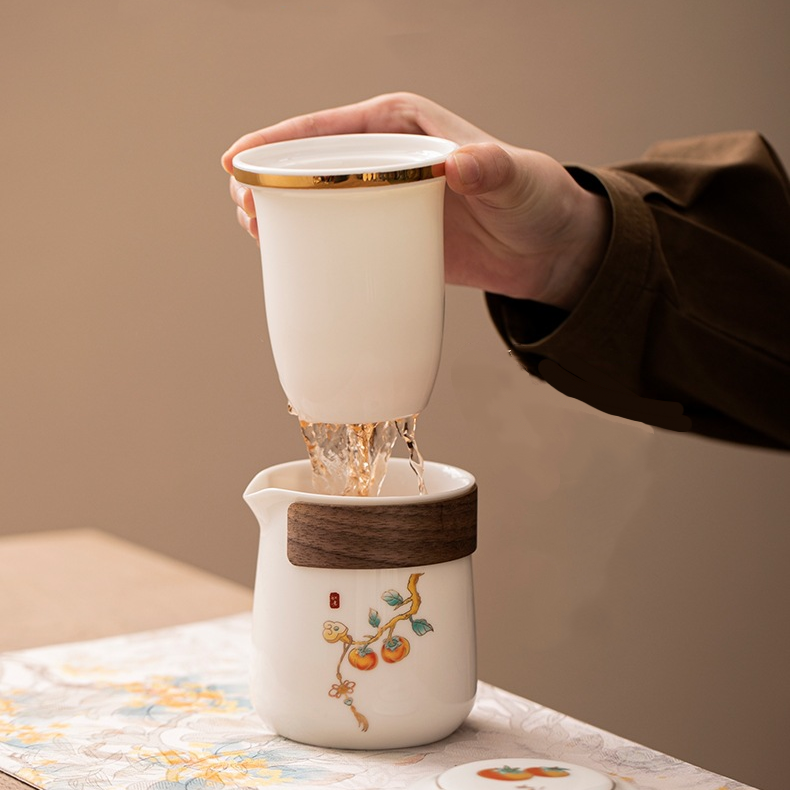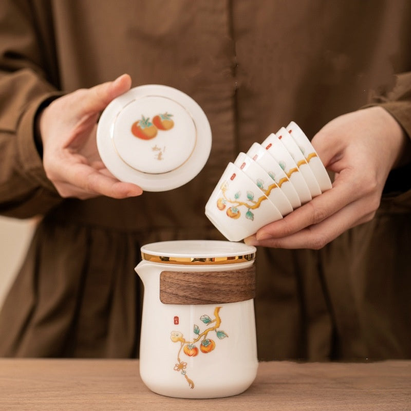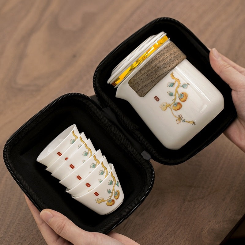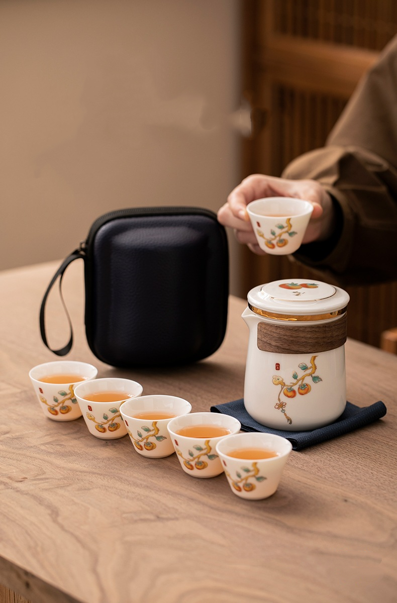Persimmon Travel Tea set, portable and portable, with a good meaning of everything going well, Quick Guest Cup (White)