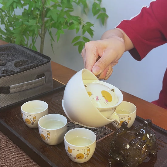 360 degree ceramic portable travel tea set (Lucky Cat)