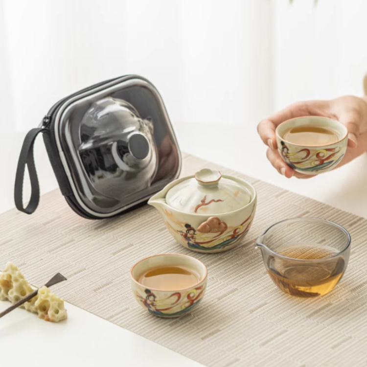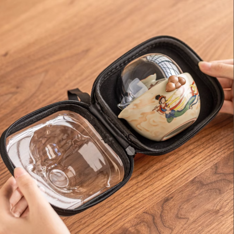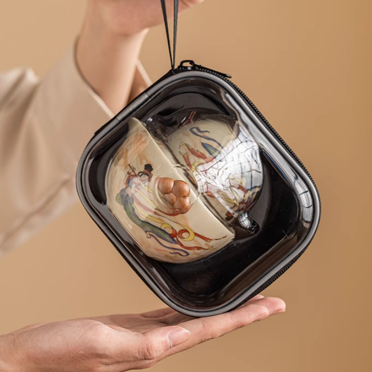 - When you purchase this product, you will receive: 1 teapot, 2 tea cups, 1 fair cup and 1 portable bag. The exquisite design allows you to carry this teapot and tea set everywhere to enjoy tea.