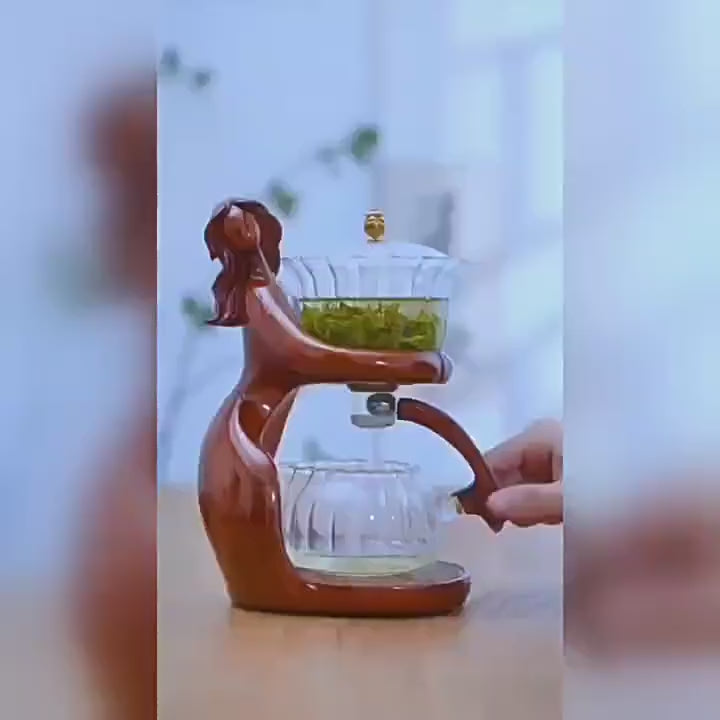 Semi-Automatic Glass Teapot Suit for Magnetic Water Flow Wooden Glass Teapot Set with Cups (Red Maiden)
